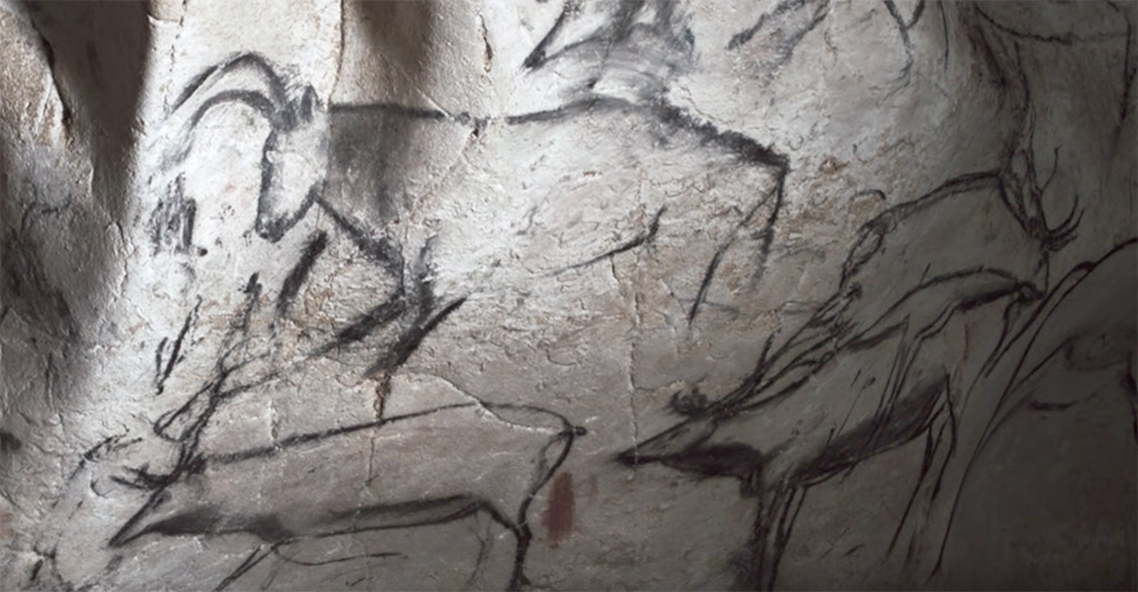 Across deep time: the Chauvet Cave paintings (40KY BCE). We will watch a portion of The Cave of Forgotten Dreams by Werner Herzog, from 29:58 – 32:45 (purchase required). Regarding two artists, 5000 years apart, who ‘collaborated’ on the same drawing, Herzog remarks: “We are locked in history, and they were not.”