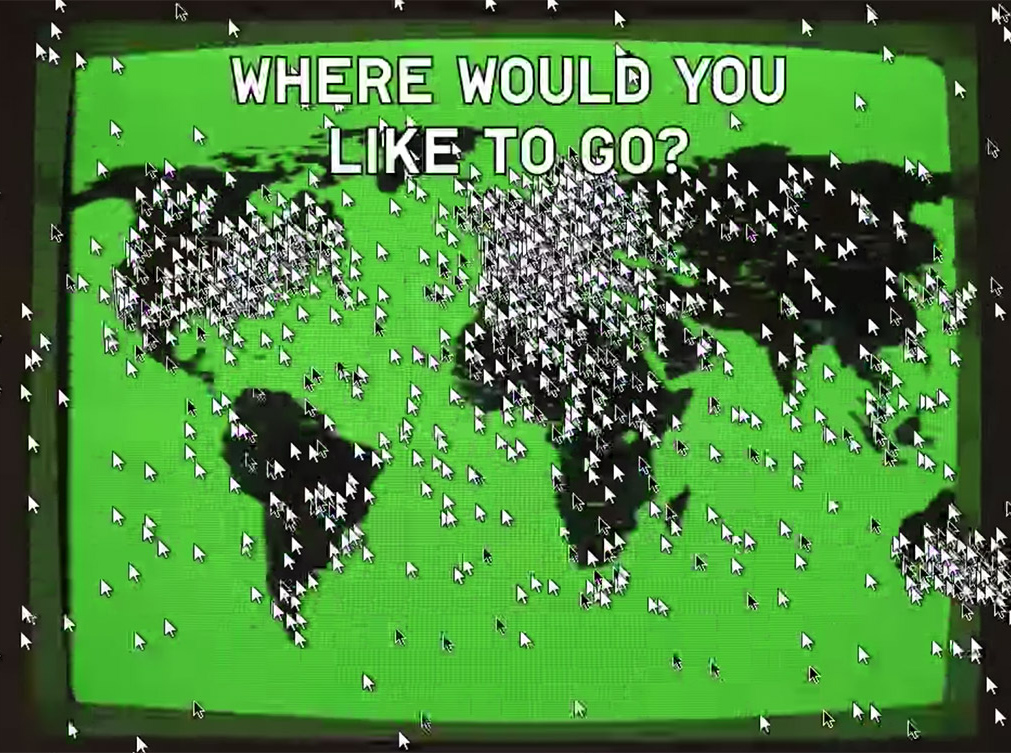 Studio Moniker (Luna Maurer & Roel Wouters). Do Not Touch. 2013. Interactive crowdsourced music video. https://studiomoniker.com/projects/do-not-touch. A crowdsourced music video. Visitors to an interactive web application listen to a song, during which they receive simple instructions on how to move their mouse cursor (“Catch the green dot”). Thus orchestrated, these cursor movements are recorded and then played back in sync with the song.