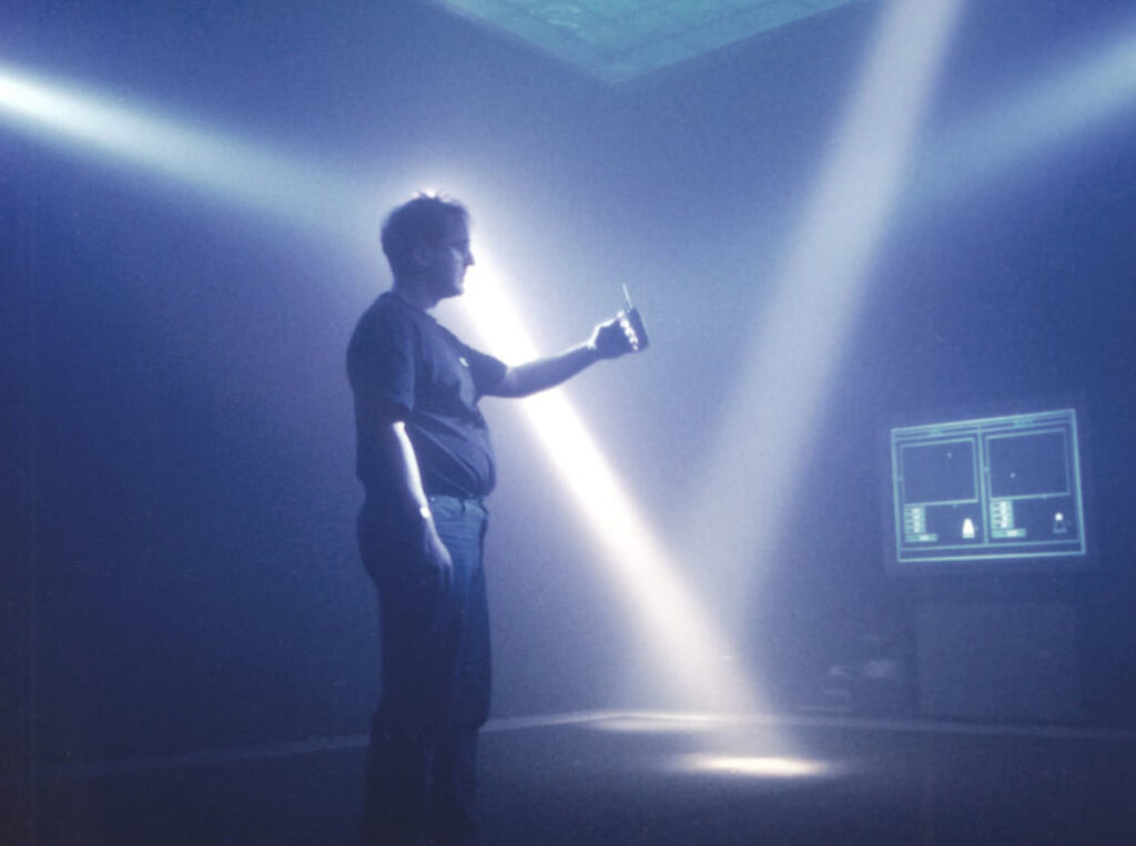 Lozano-Hemmer, Rafael. The Trace. 1995. Interactive telepresence installation. http://www.lozano-hemmer.com/the_trace.php. In The Trace (1995), a participant encounters the moving, ghostlike “presence” of another person, who is located in an identical but separate room. Their presence is conveyed by a glowing spot created by a pair of intersecting beams of light.