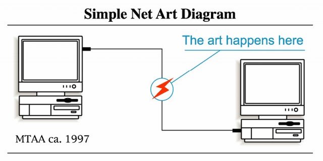As soon as there was an Internet, there was art on the Internet. Immediately there arose two approaches: creators who used the Internet as a new way of disseminating traditional media (photography, music, etc.) in online galleries; and creators of “Net.Art”, who made Internet-native artworks whose forms intrinsically depended on the networked condition.