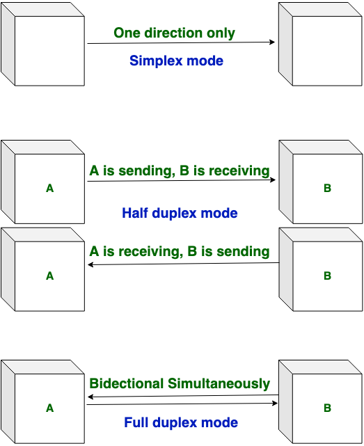 - Simplex vs. half-duplex vs. full duplex
