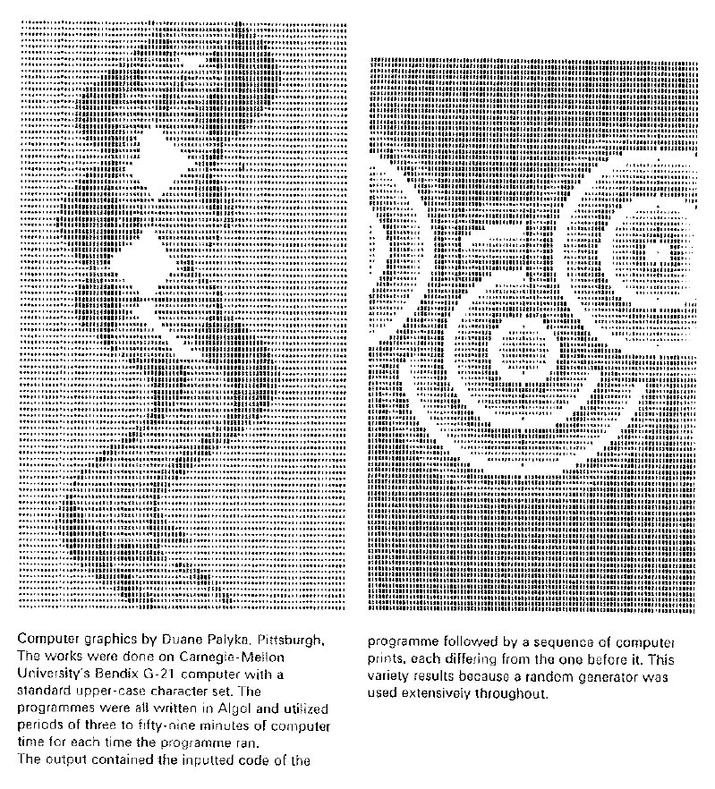 Duane M. Palyka (born in Pittsburgh, 1944) studied mathematics (B.A. 1968) and fine arts (B.F.A. 1969) here at Carnegie Mellon University — making him the first person to earn a Computer Science and Art degree combination at our school. His path to freely creating cutting-edge, computer-generated art was not without obstacles. The head of the CMU computation center frowned upon using precious computer time for the creation of art; he called the undertaking “not normal,” and halted Palyka’s work. Luckily, CMU professor Herb Simon stepped in and offered support to Palyka through mentoring and a stipend to further his research. In 1968, while still an undergraduate, Palyka’s computer-generated art was exhibited alongside other pioneering artists like Nam June Paik in the landmark Cybernetic Serendipity exhibition at the ICA London. Watch his interview in this CMU oral history video (from 5:12-10:07).
