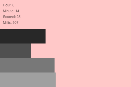 Try to devise a novel graphic concept. I encourage you to question basic assumptions about how time is represented. Feel free to experiment with any of the graphical tools at your disposal, including color, shape, transparency, etc. You’ll probably need to use the hour(), minute(), second(), and millis() functions, but you’re also welcome to use day(), month(), and year() functions in order to build a clock that evolves over longer timescales, lifetimes, etc. If your timepiece measures other phenomena, that’s fine too.
